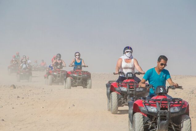 Experience a thrilling ride through the sand dunes to a Bedouin village, where you can enjoy black tea and a ride on a camel. and when you book desert safari Hurghada you will Explore the desert by quad bike on this exciting tour from Hurghada. You will be picked up at your hotel and taken to the quad bikes, where you will have the chance to test drive and learn all the important details of the vehicle before setting off on the tour.
