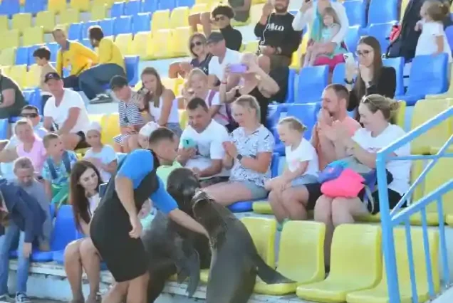 - Walrus performing funny tricks at Dolphin World Egypt.