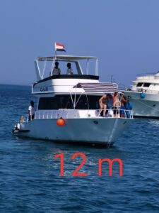 Your private boat trip from Hurghada starts at 12:00 PM, when you board your private boat at the marina. From the moment you step on board, you will enjoy privacy, professional service, and a relaxed atmosphere as you sail across the crystal-clear waters of the Red Sea.